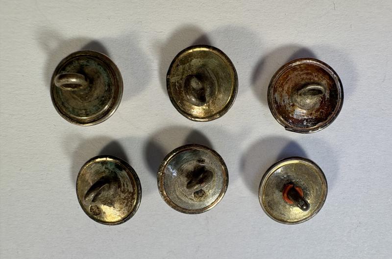 A set of 6 rare Georgian closed-back coatee buttons, marked with a crown and 'GY' to the front. 8.5 mms diameter.